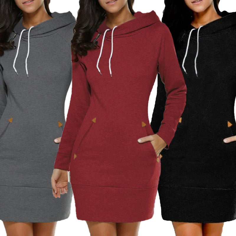 Women Autumn Winter Fashion Sweatshirt Dresses for Women Pocket Hooded Casual Dress Solid Color Long Sleeve Mini Dress